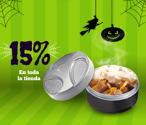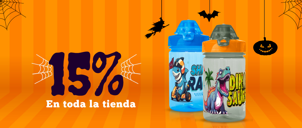 Este Halloween, el mejor “trato” es para ti: 15% de descuento en toda la tienda. Lleva tus botellas, termos y sanducheras favoritas ¡antes de que desaparezcan como fantasmas!