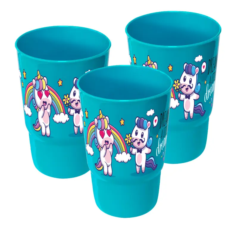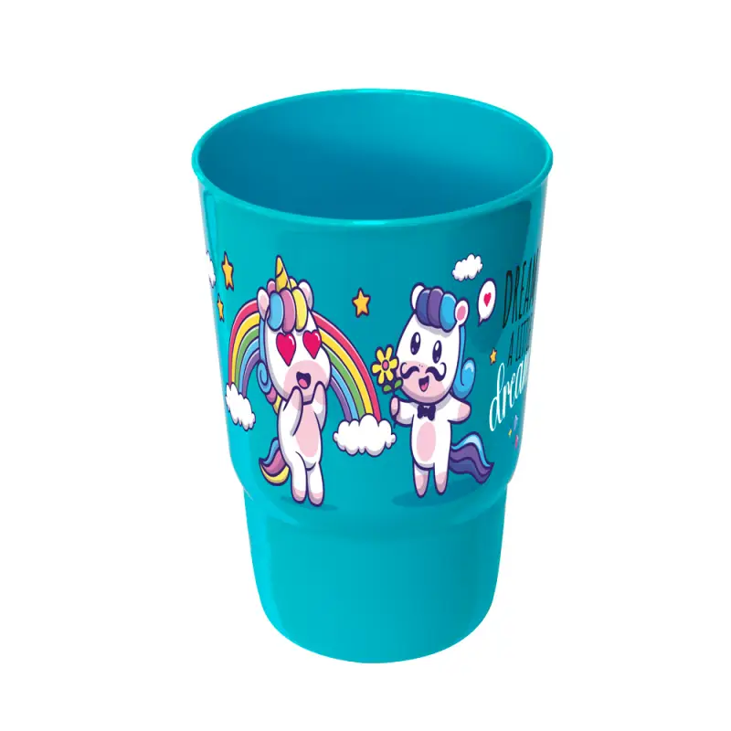 Vaso Infantil decorado con personajes licencia, fabricado de material resistente.